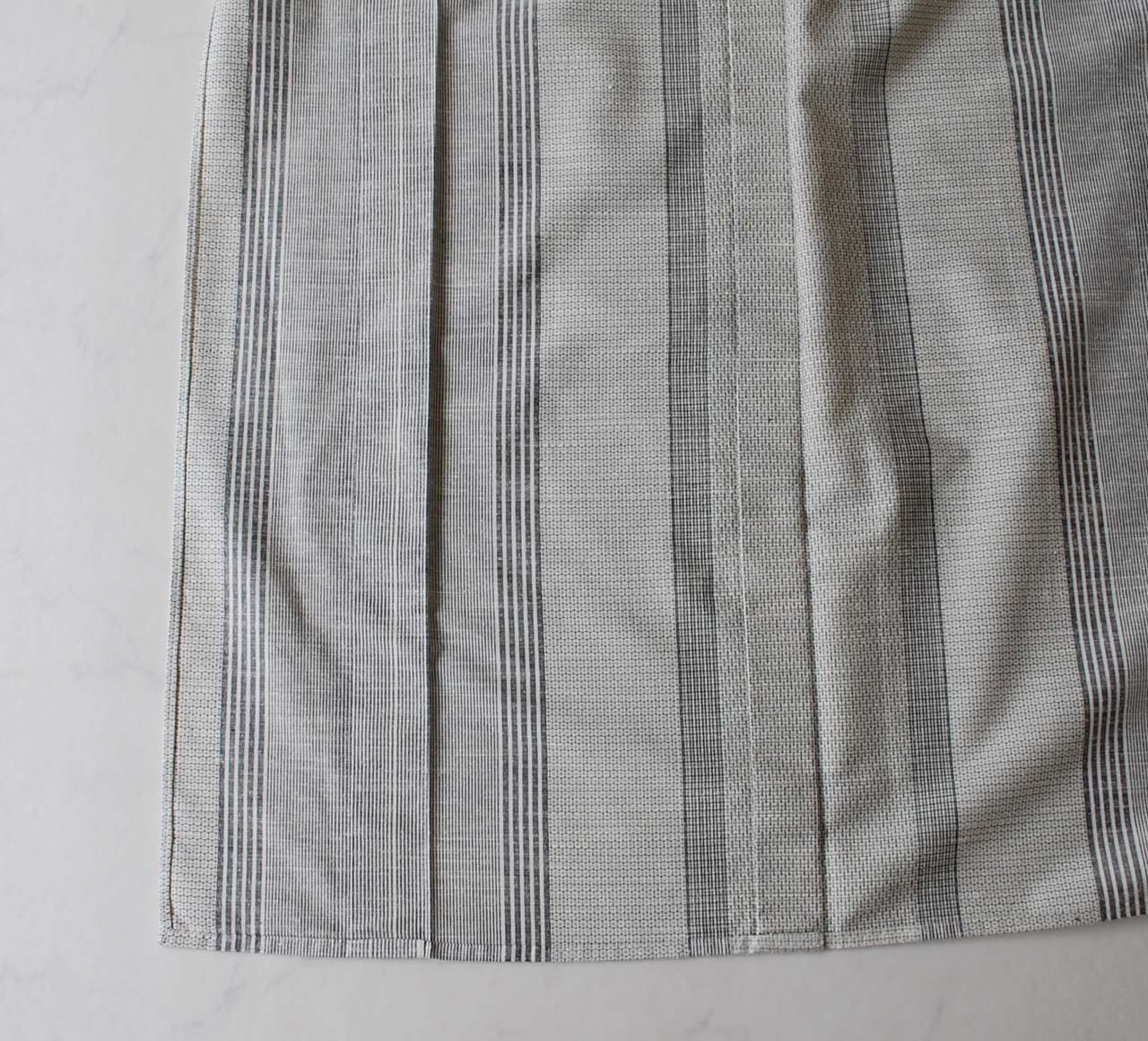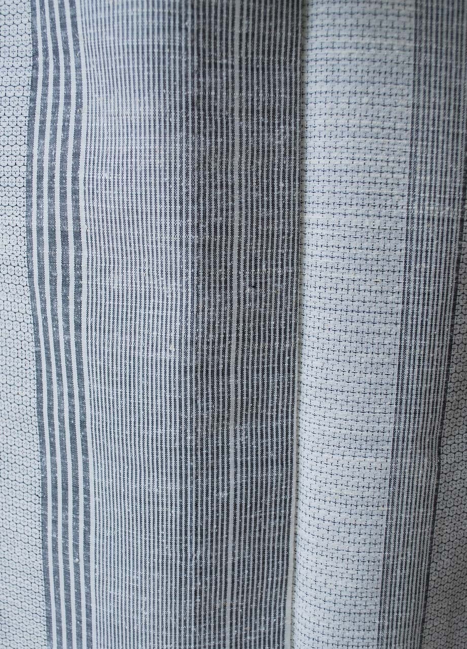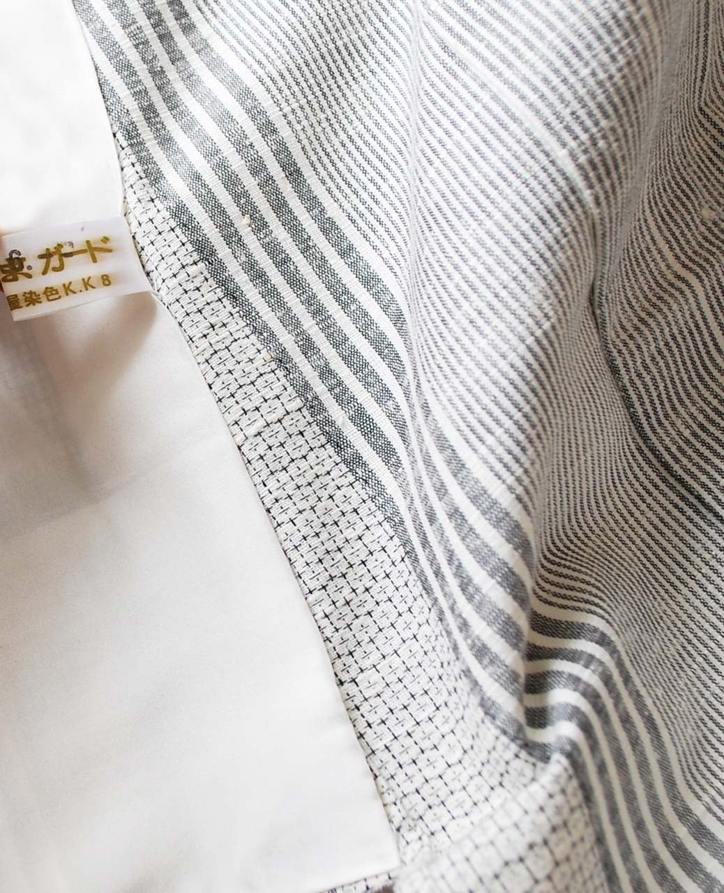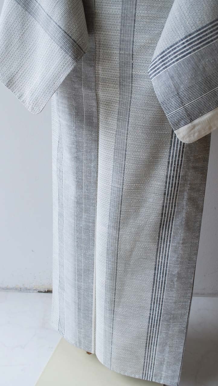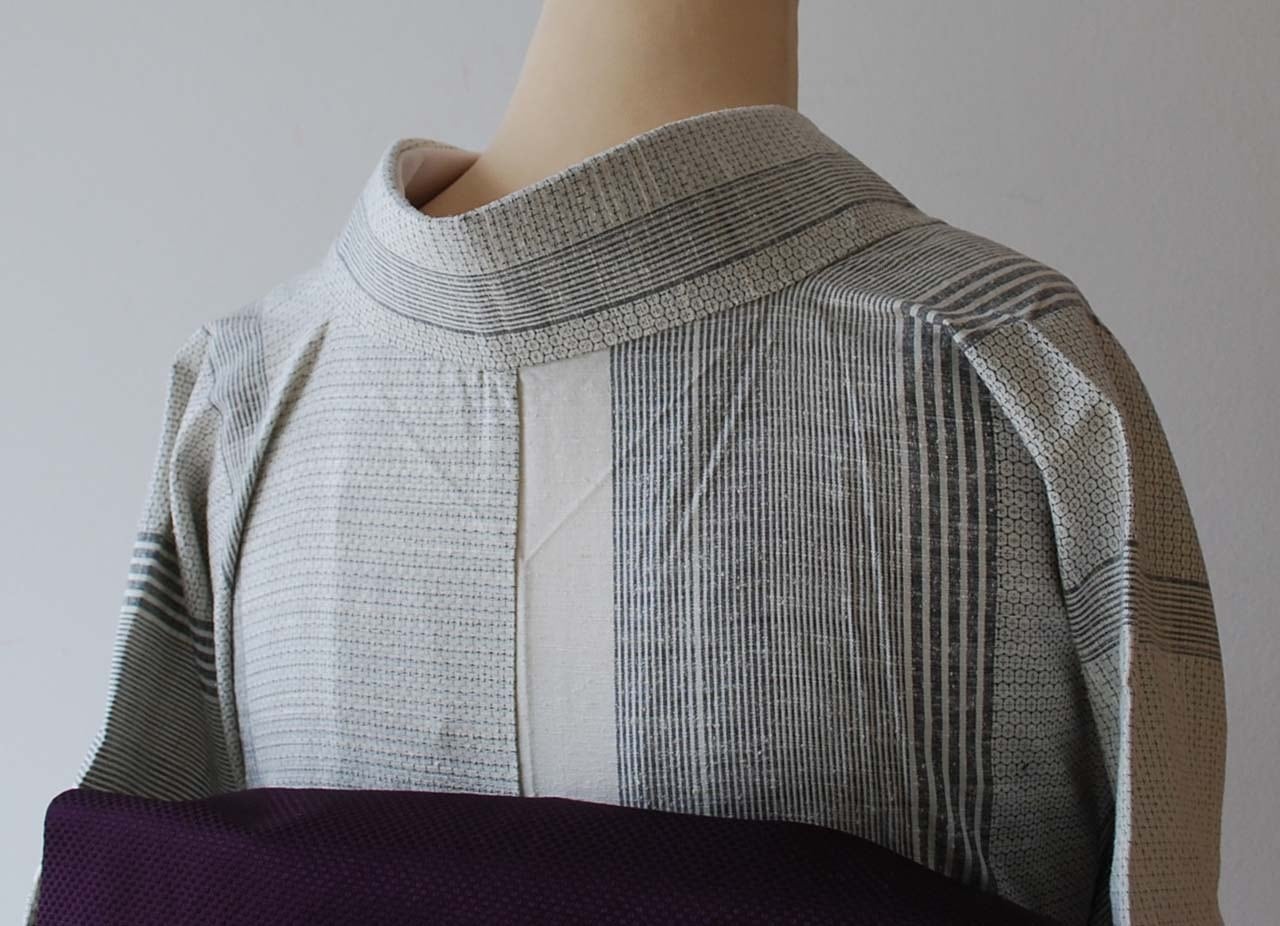 【単衣】白練色×藍墨茶色 さまざまな絣の縞 単衣紬