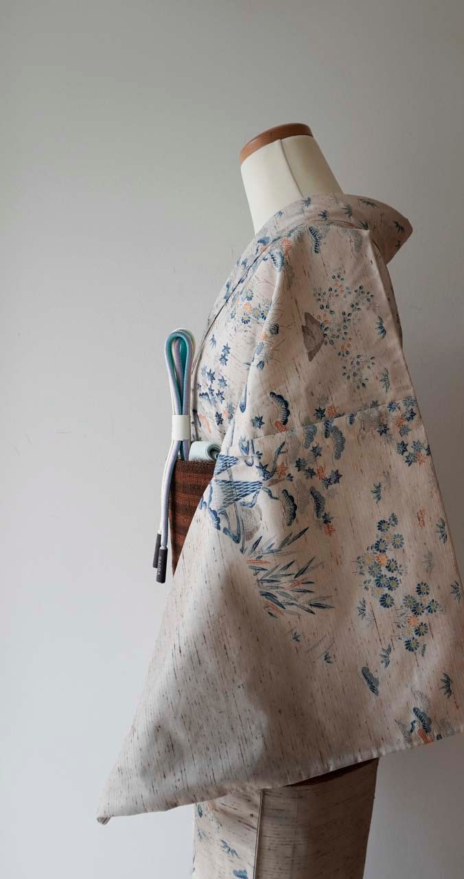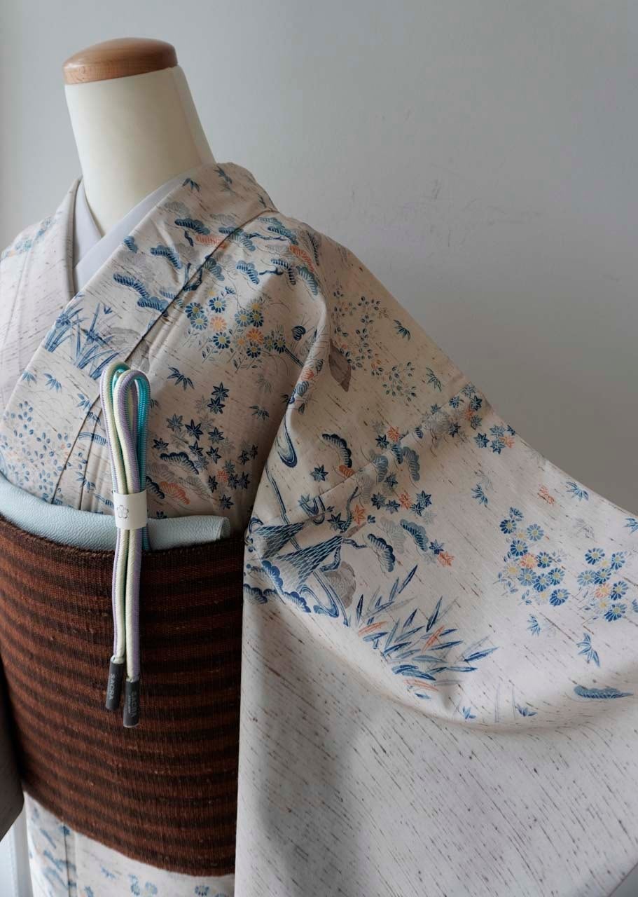 牛首紬を思わせる、薄くしなやかな紬地。