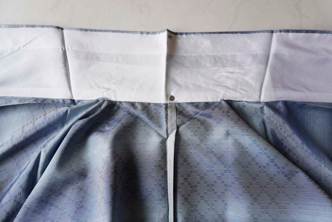 淡いブルーと淡い紺藍色を織り交ぜた、