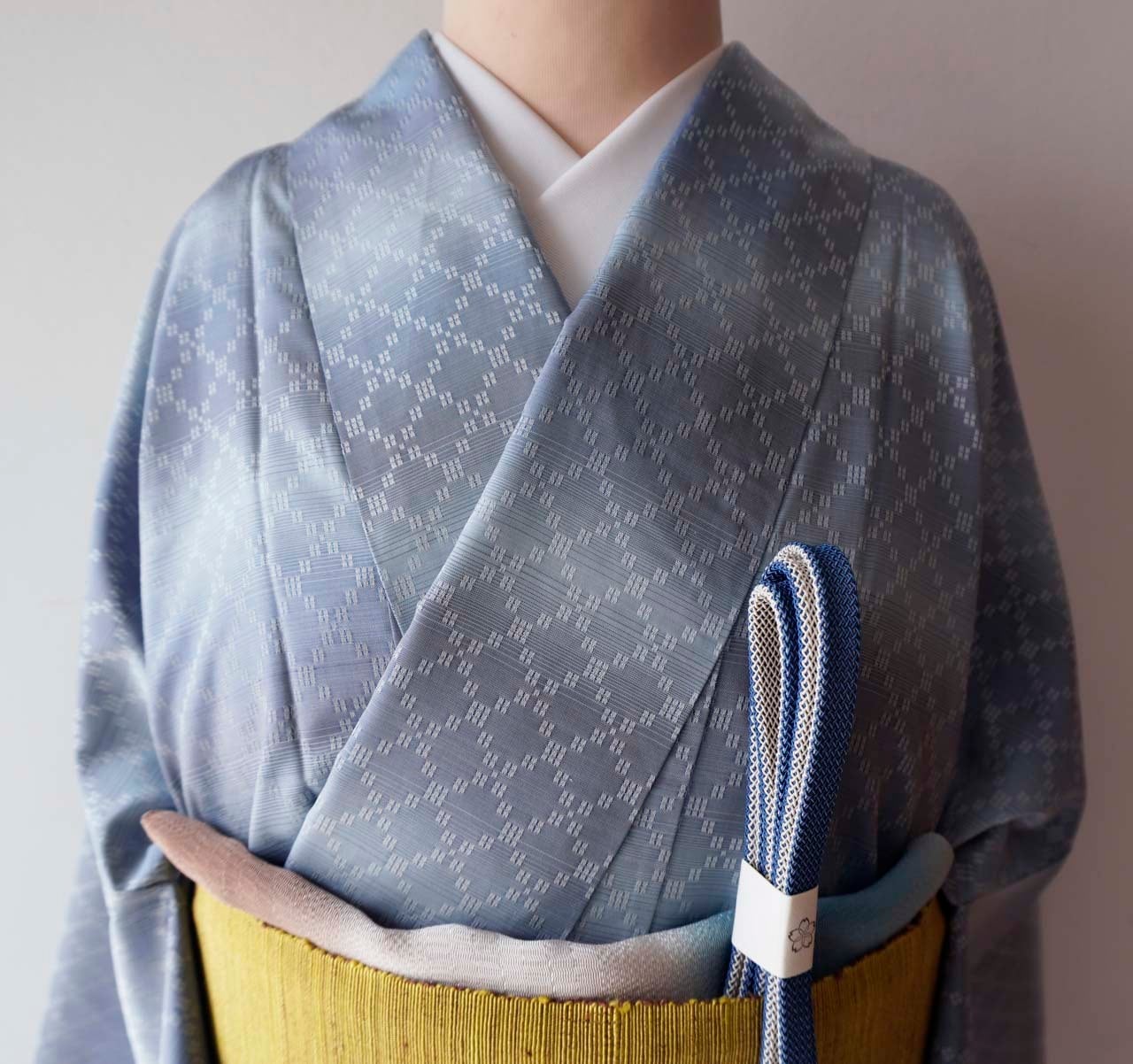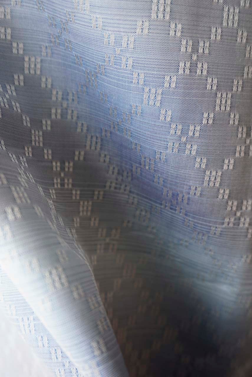 全体に織り出された菱繋ぎの連続文様は