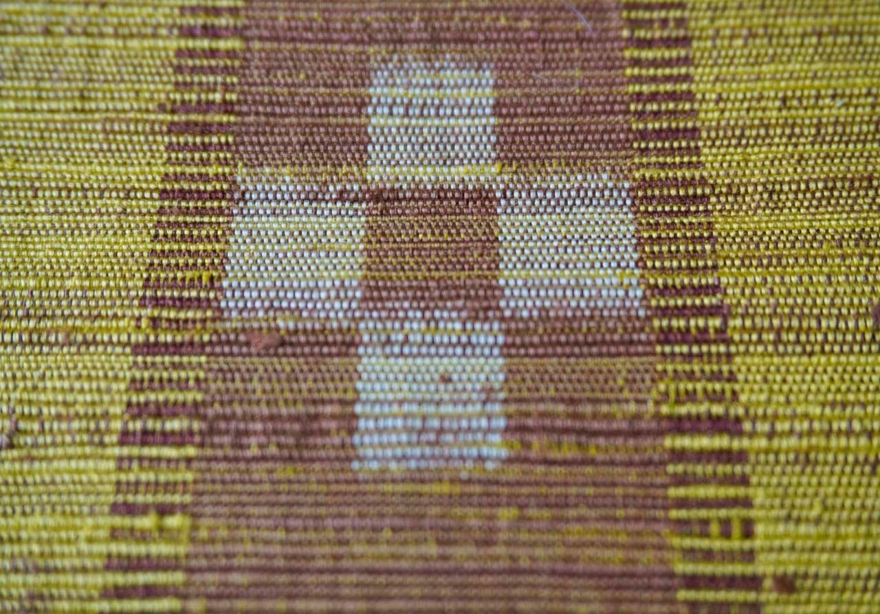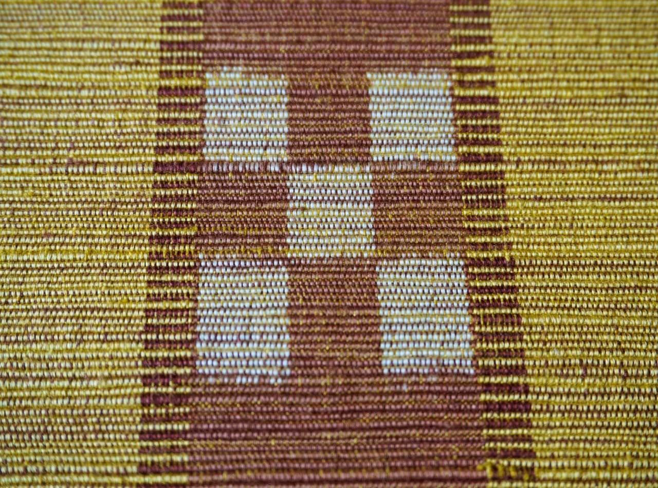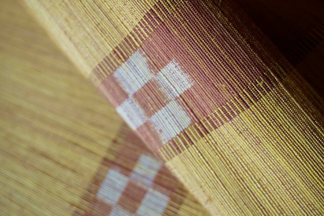 山吹色に赤茶の縞に琉球絣のシンプルな