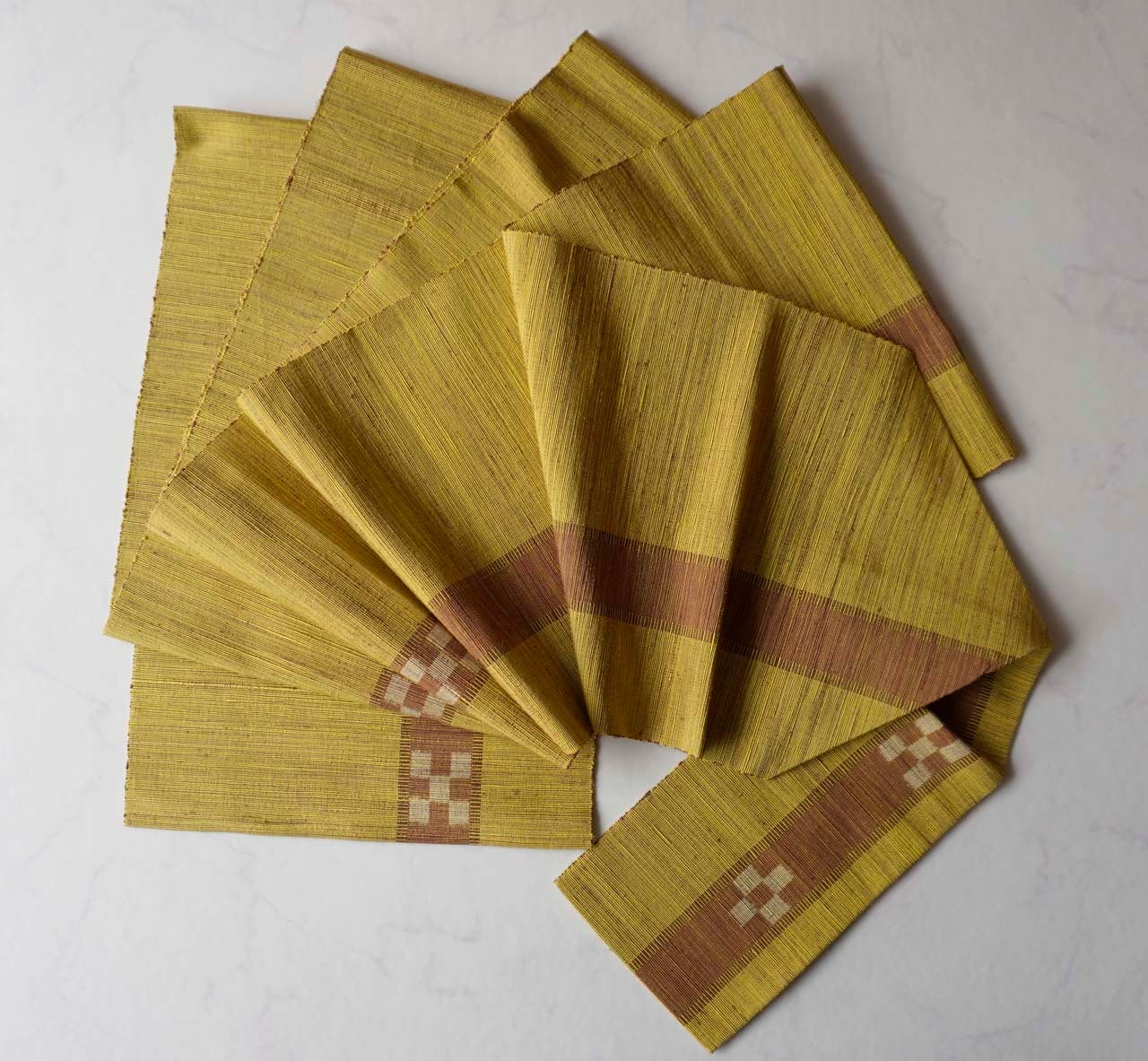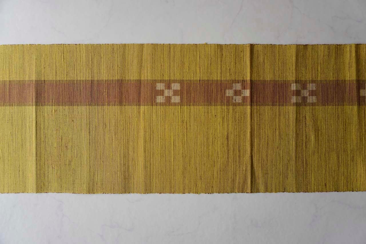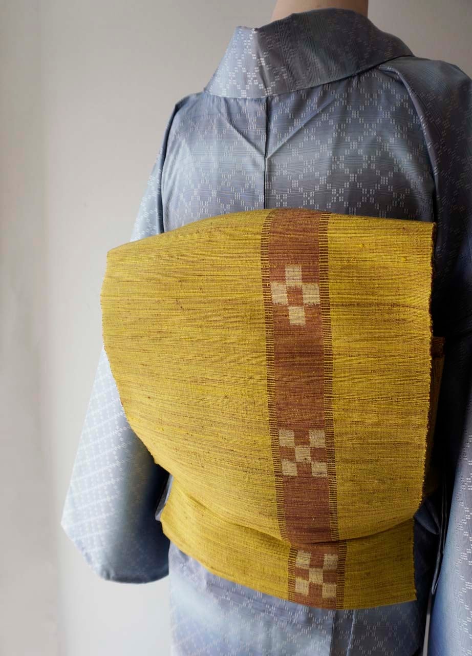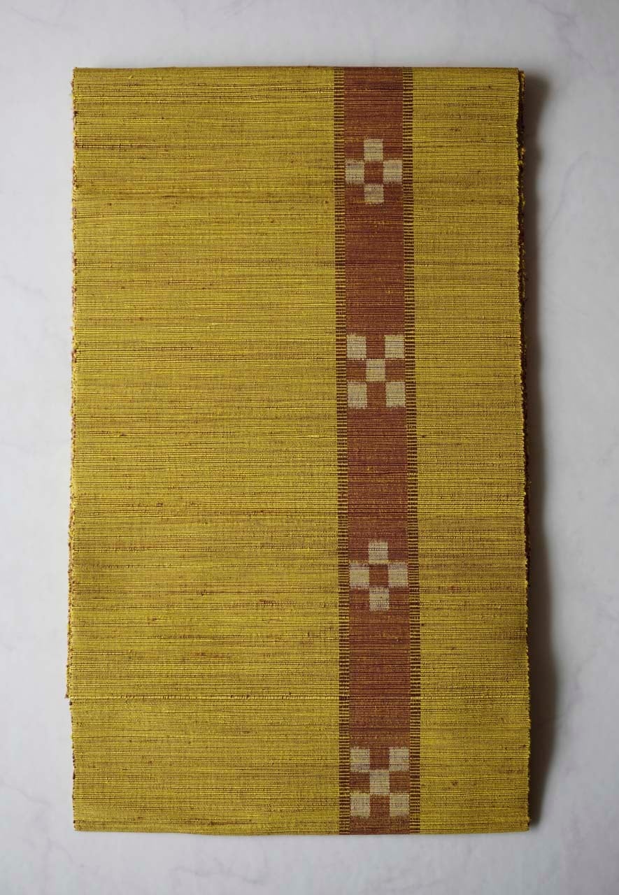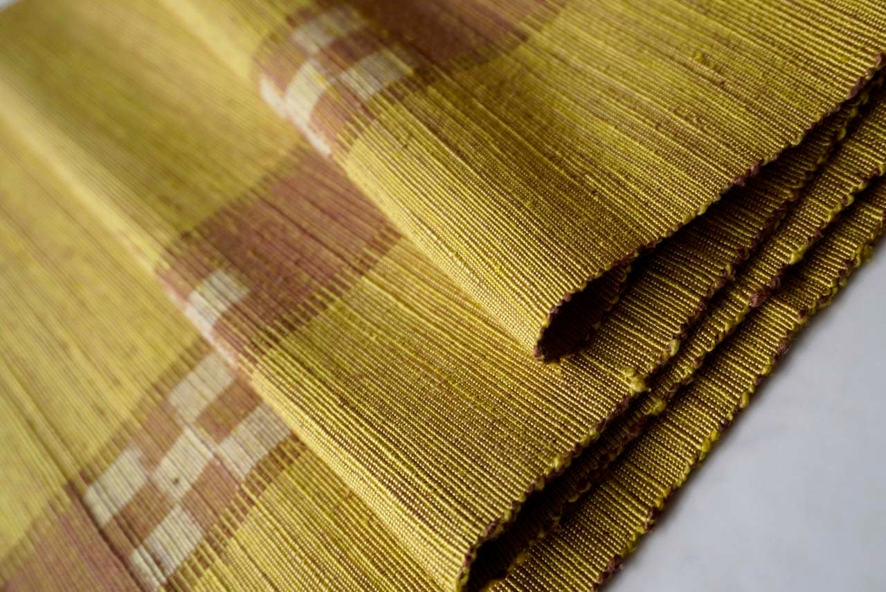 【なごや帯】芥子色地 ミンサー織り ユカドゥ+インヌヒサ 八寸なごや帯