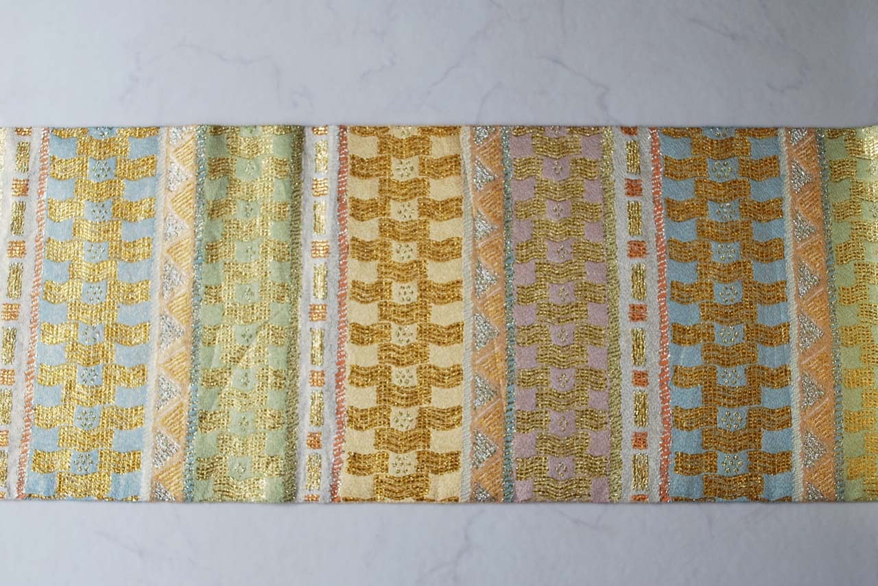 【ふくろ帯】佐賀錦 横段幾何学柄 ふくろ帯