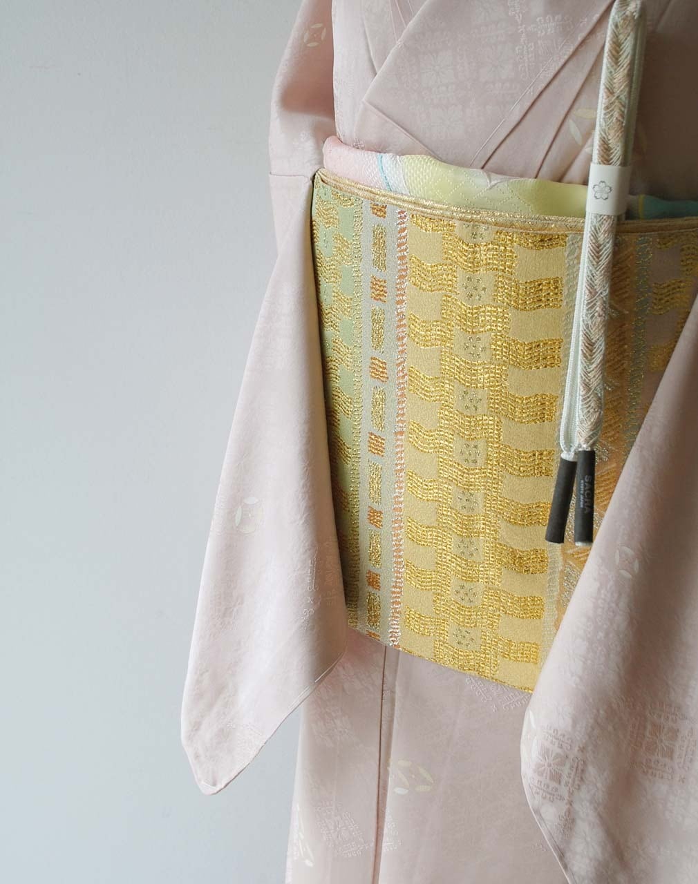 佐賀錦、横段幾何学柄ふくろ帯です。
