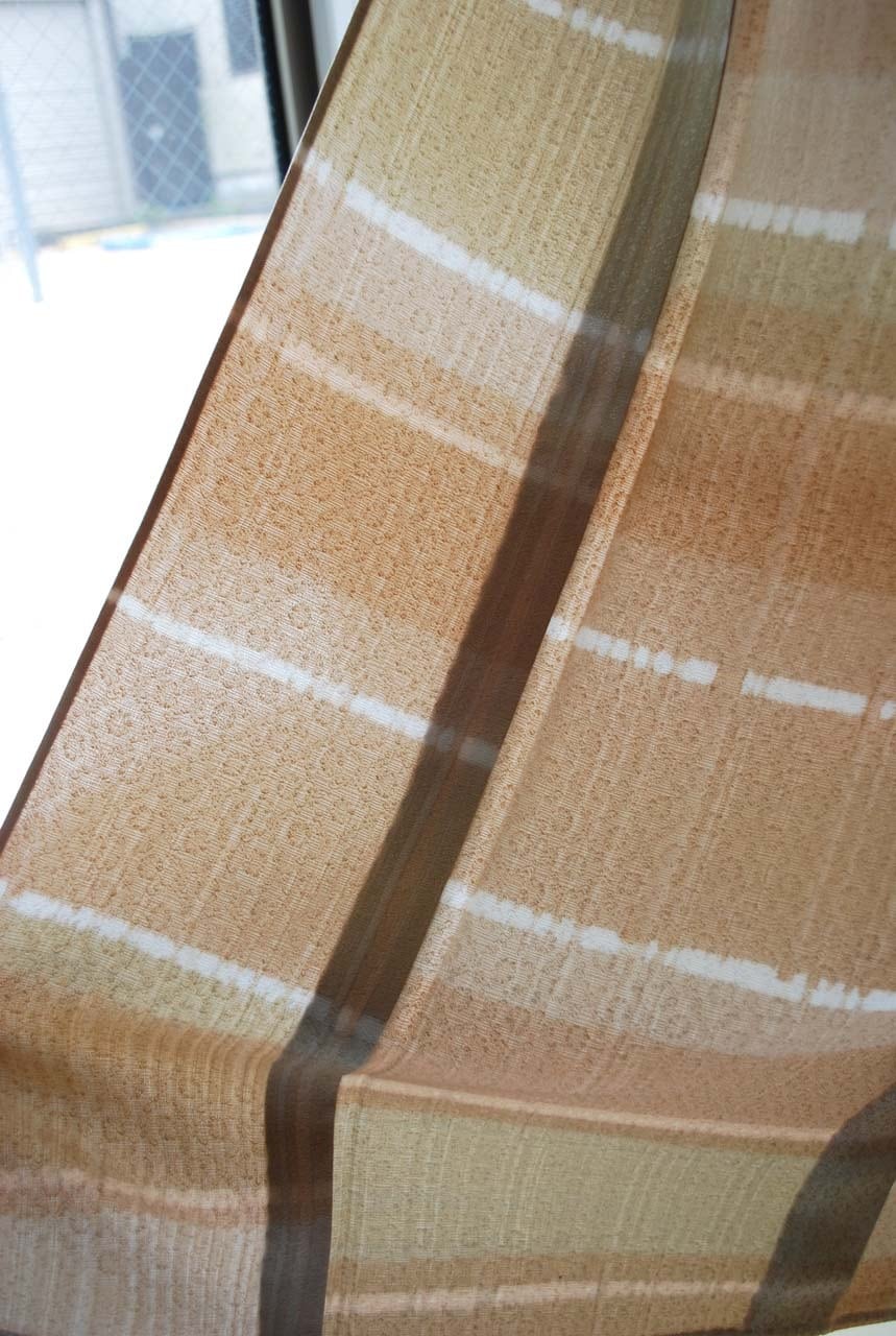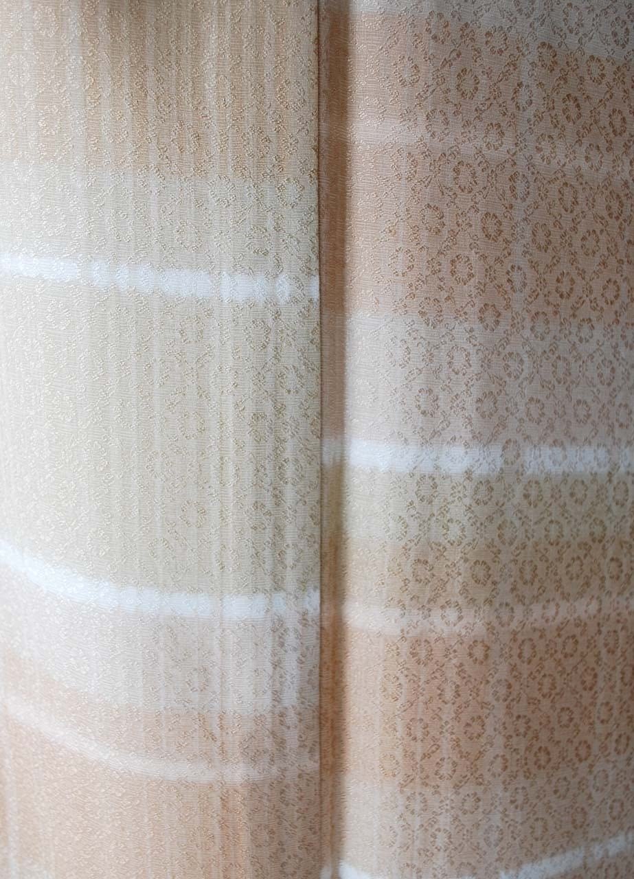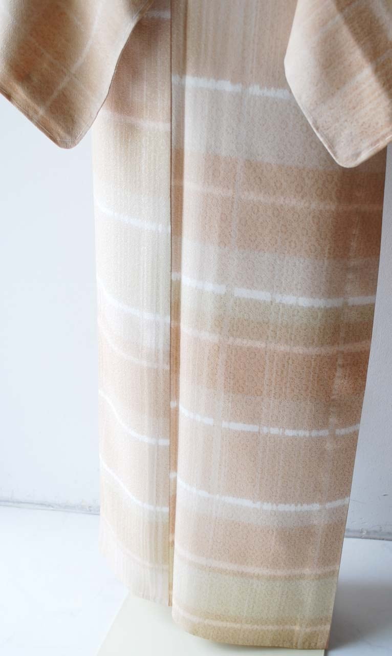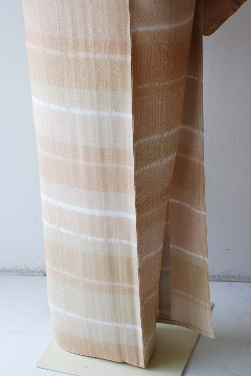 【単衣】白茶色系 変わり横段 ろうけつ染め 単衣小紋