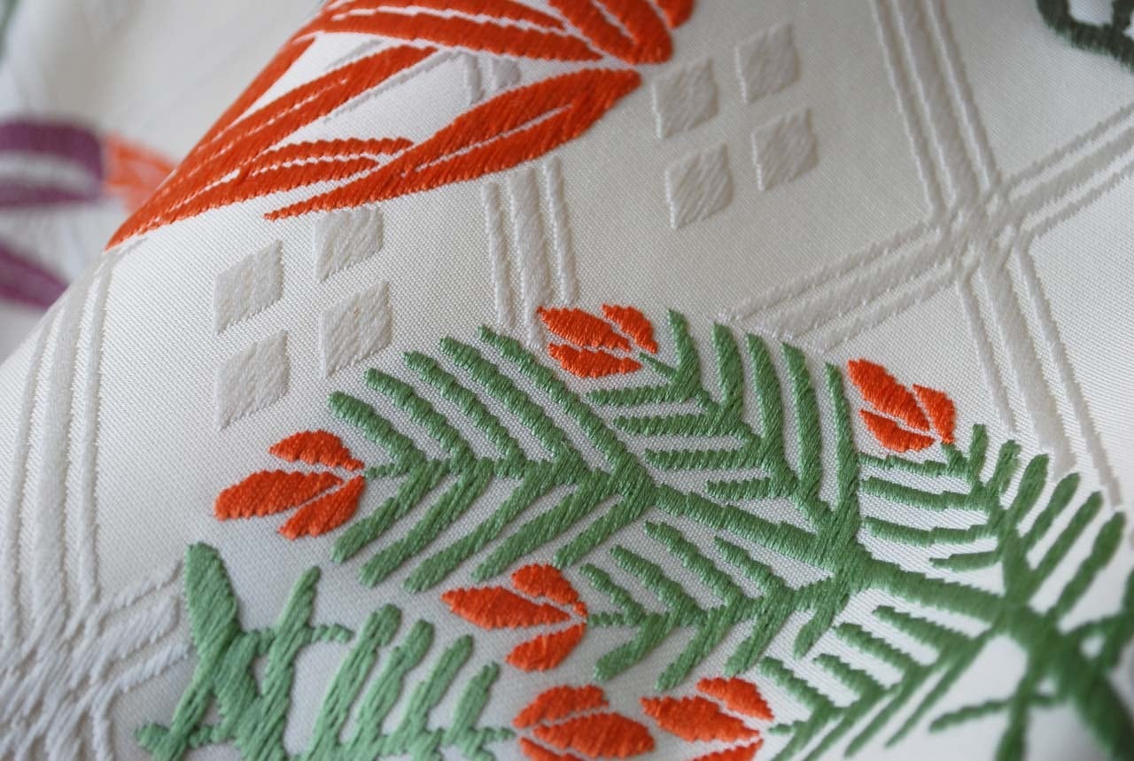 穏やかな光沢のある生成り地に、