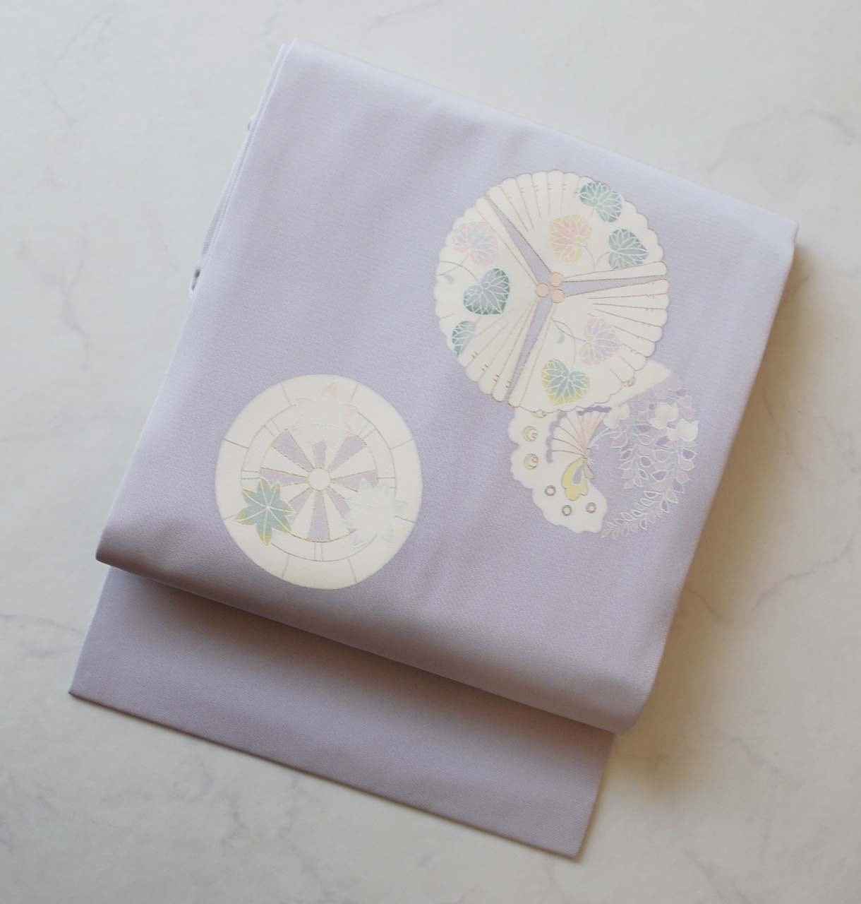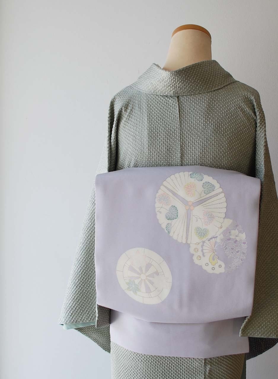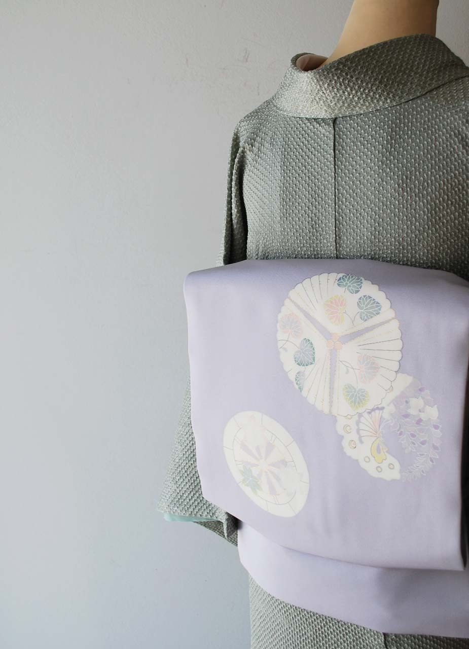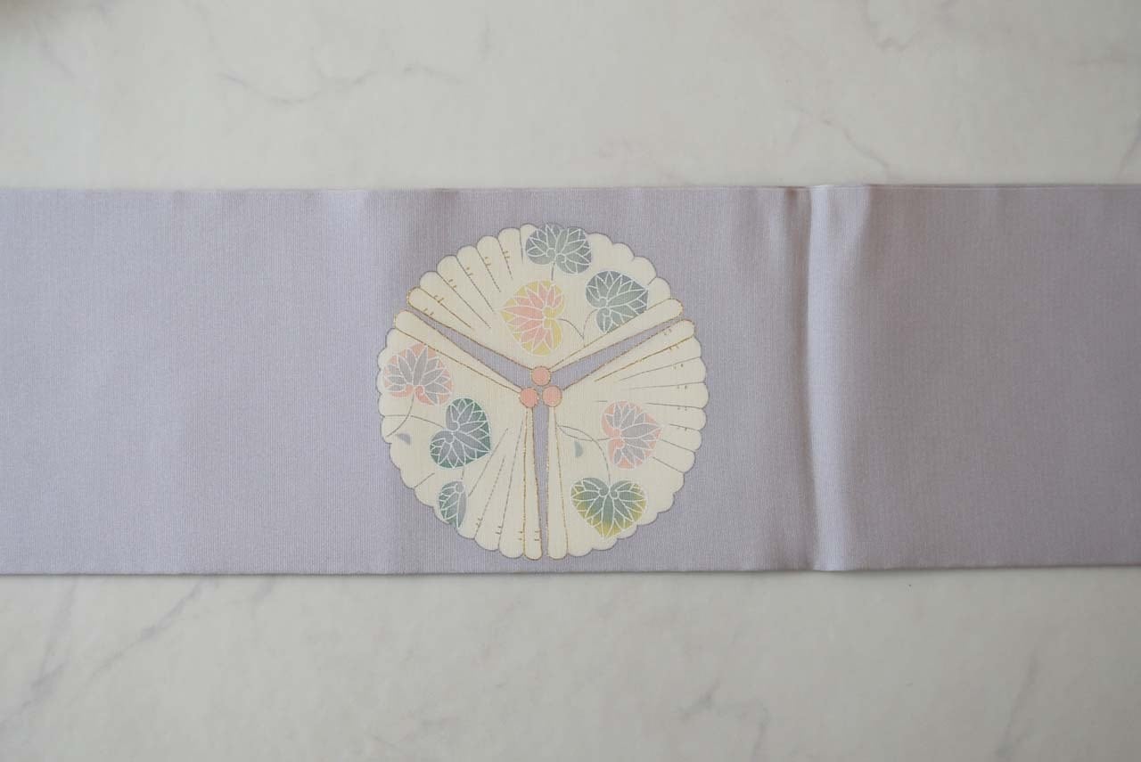 【なごや帯】藤色 文様丸文柄 塩瀬なごや帯