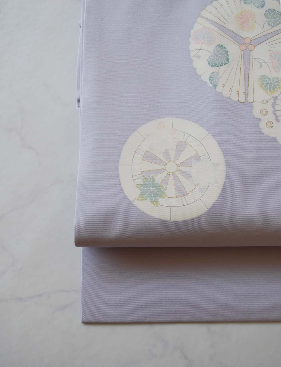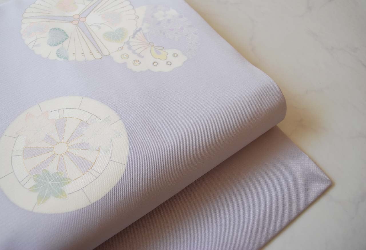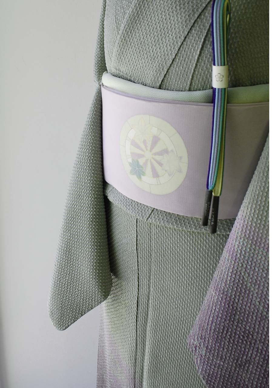 【なごや帯】藤色 文様丸文柄 塩瀬なごや帯