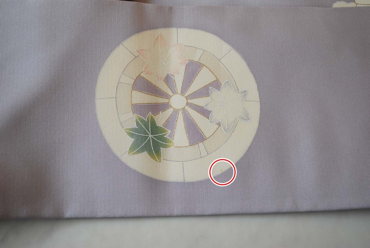 ・胴前、反時計回りに結ぶと出るお柄(画像)に薄い染みあり、
