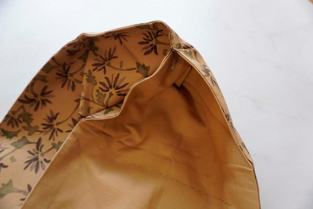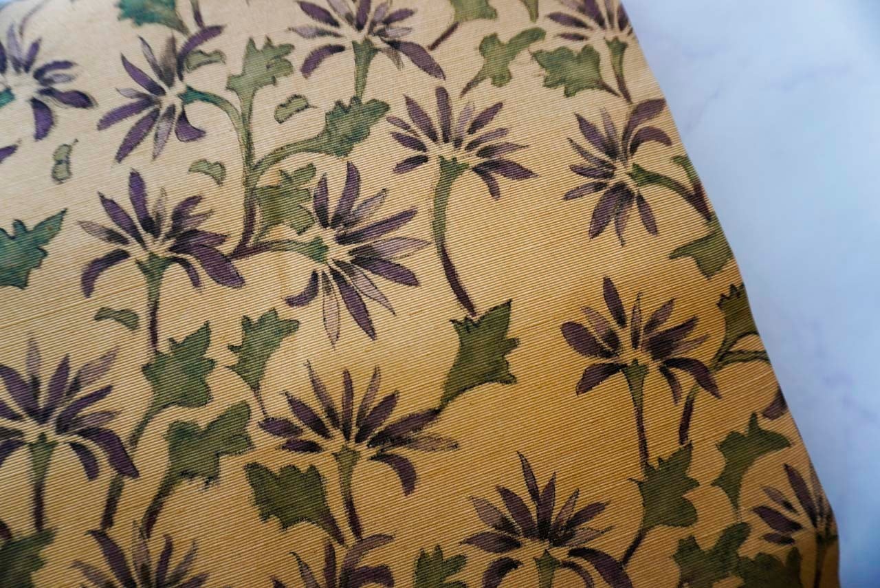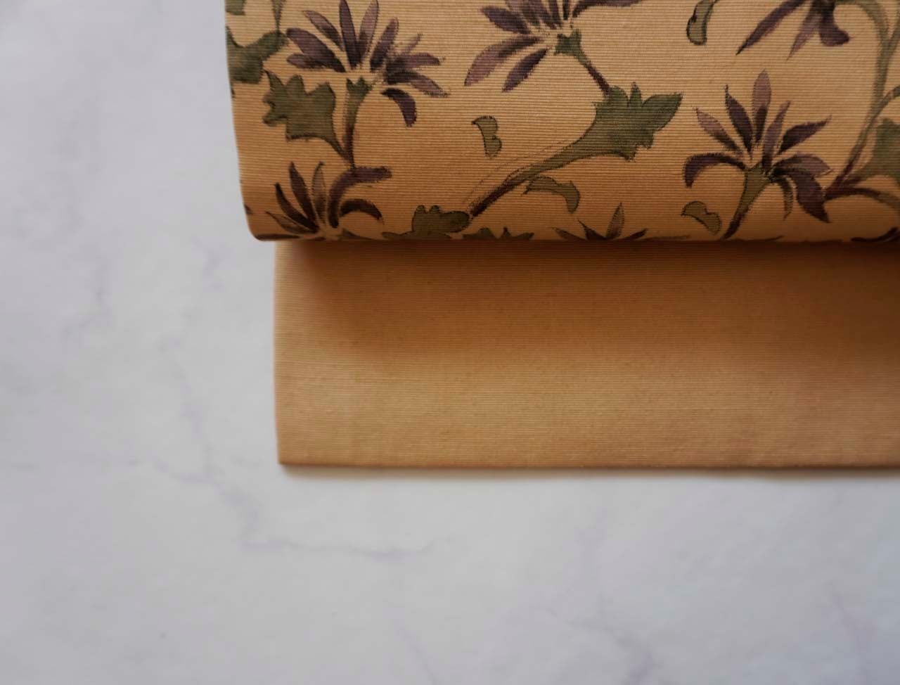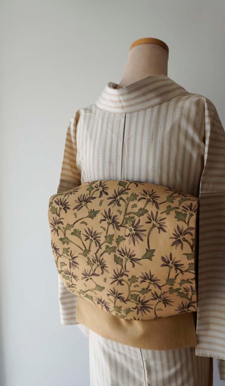 【なごや帯】黄土色 抽象草花文 紬なごや帯