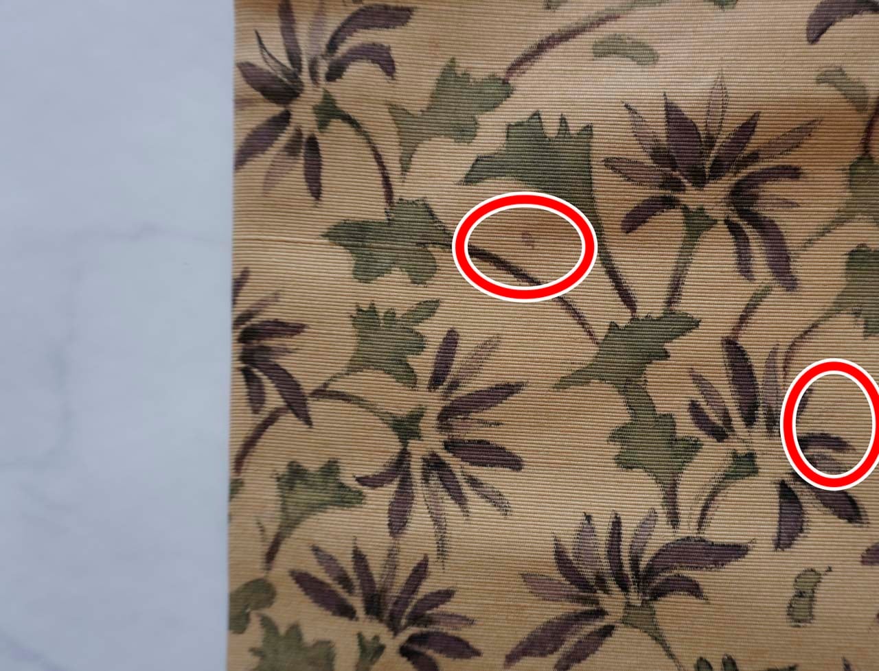 花びらには紫紺色、葉には麹塵色が染められ