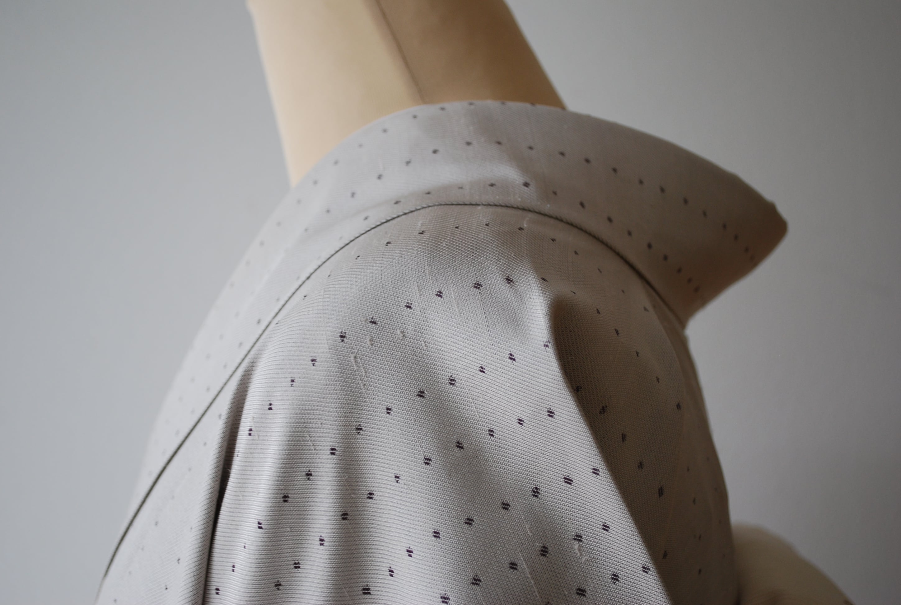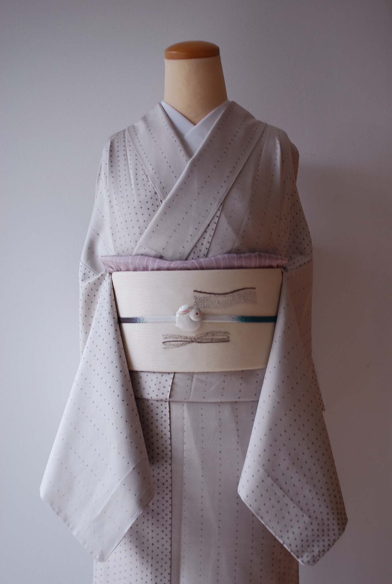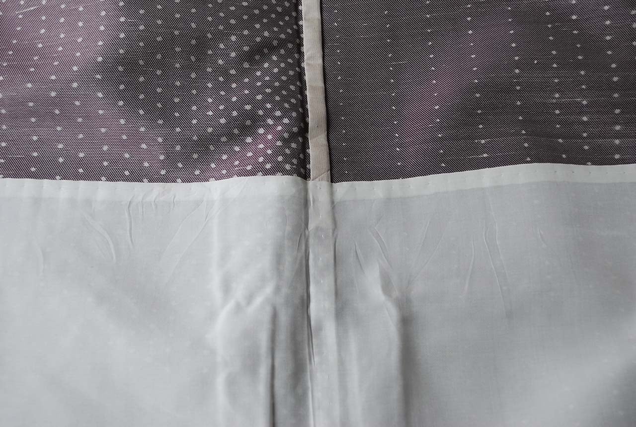 地に散るのは、葡萄色の大小ふたつのドット文様。
