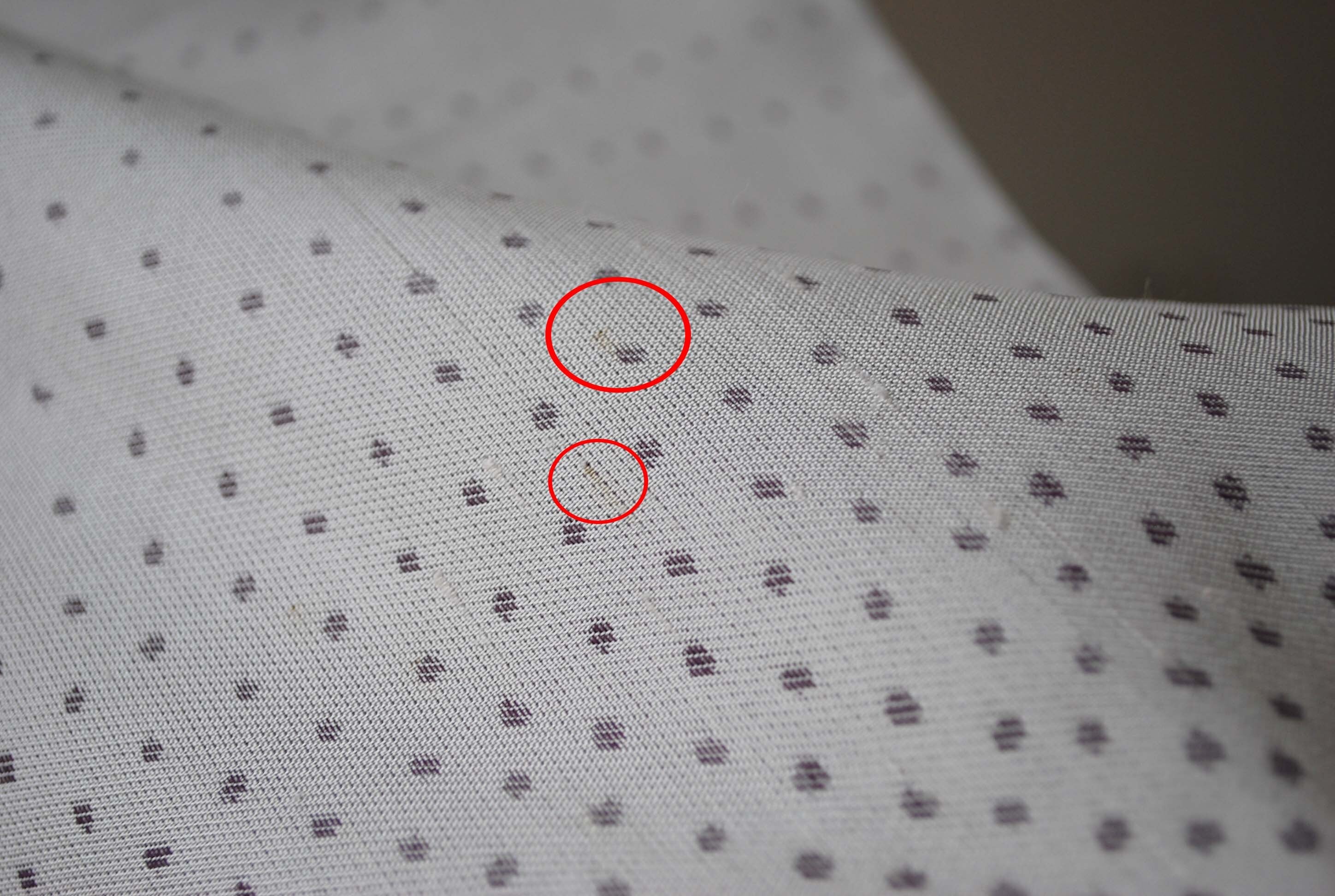 ・左袖内側、外側に薄い小さなシミが数点